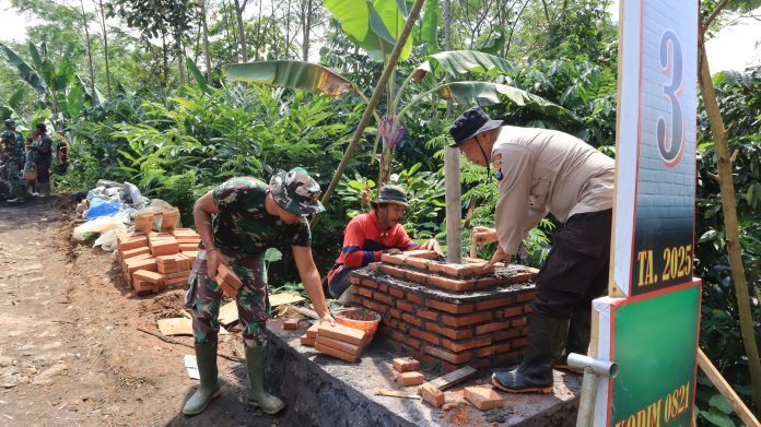 TNI-Polri dan Warga Percepat Pembangunan Tugu Brawijaya dalam TMMD ke-123 di Burno