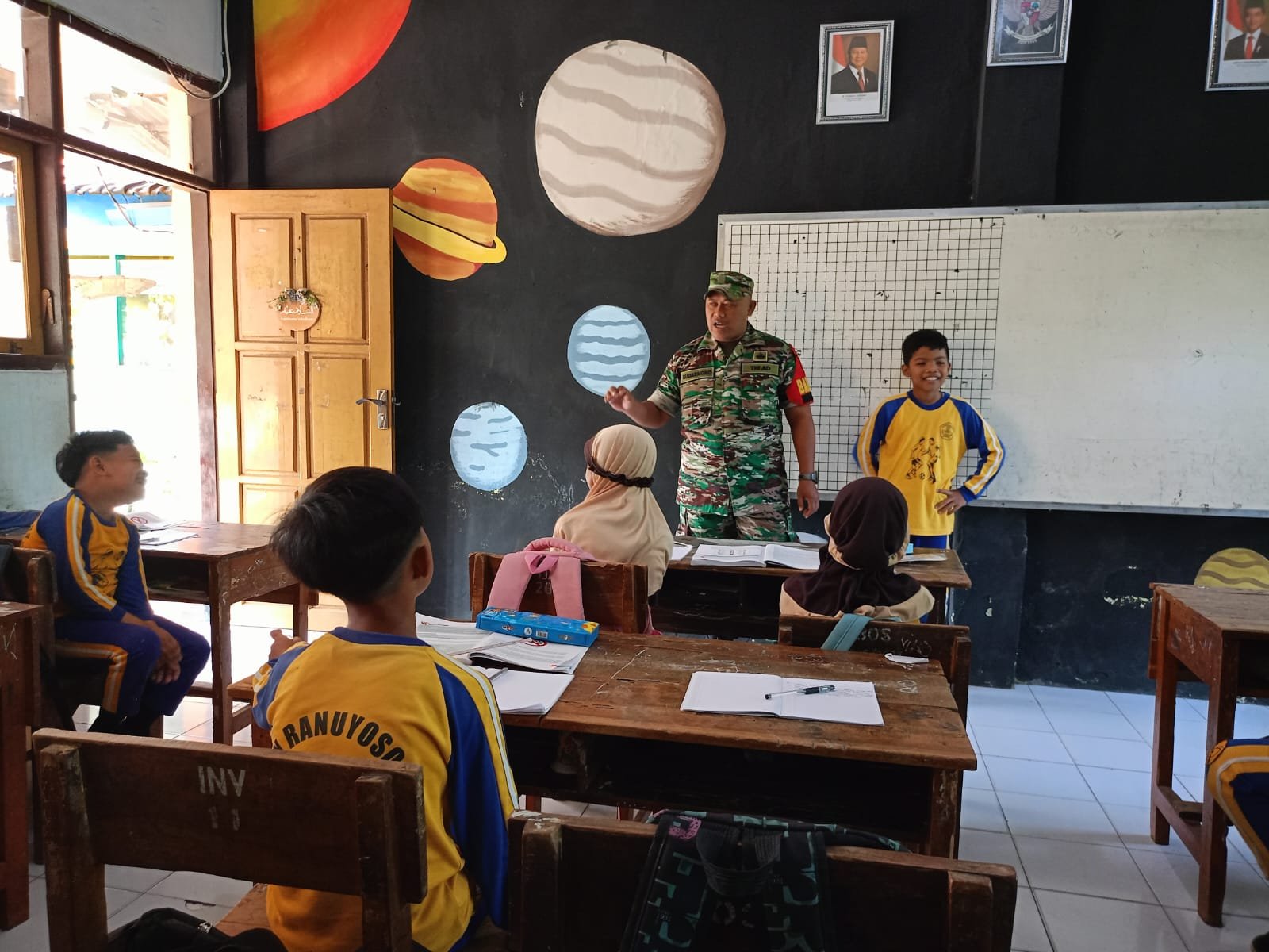 Lumajang, Dalam upaya menanamkan semangat nasionalisme sejak usia dini, Babinsa Ranuyoso Koramil 0821-06/Ranuyoso, Koptu Sudarmono, memberikan materi wawasan kebangsaan kepada siswa kelas 5 SDN Ranuyoso 03, Kecamatan Ranuyoso, Kabupaten Lumajang, Jawa Timur, pada Jumat (25/4/2025).
