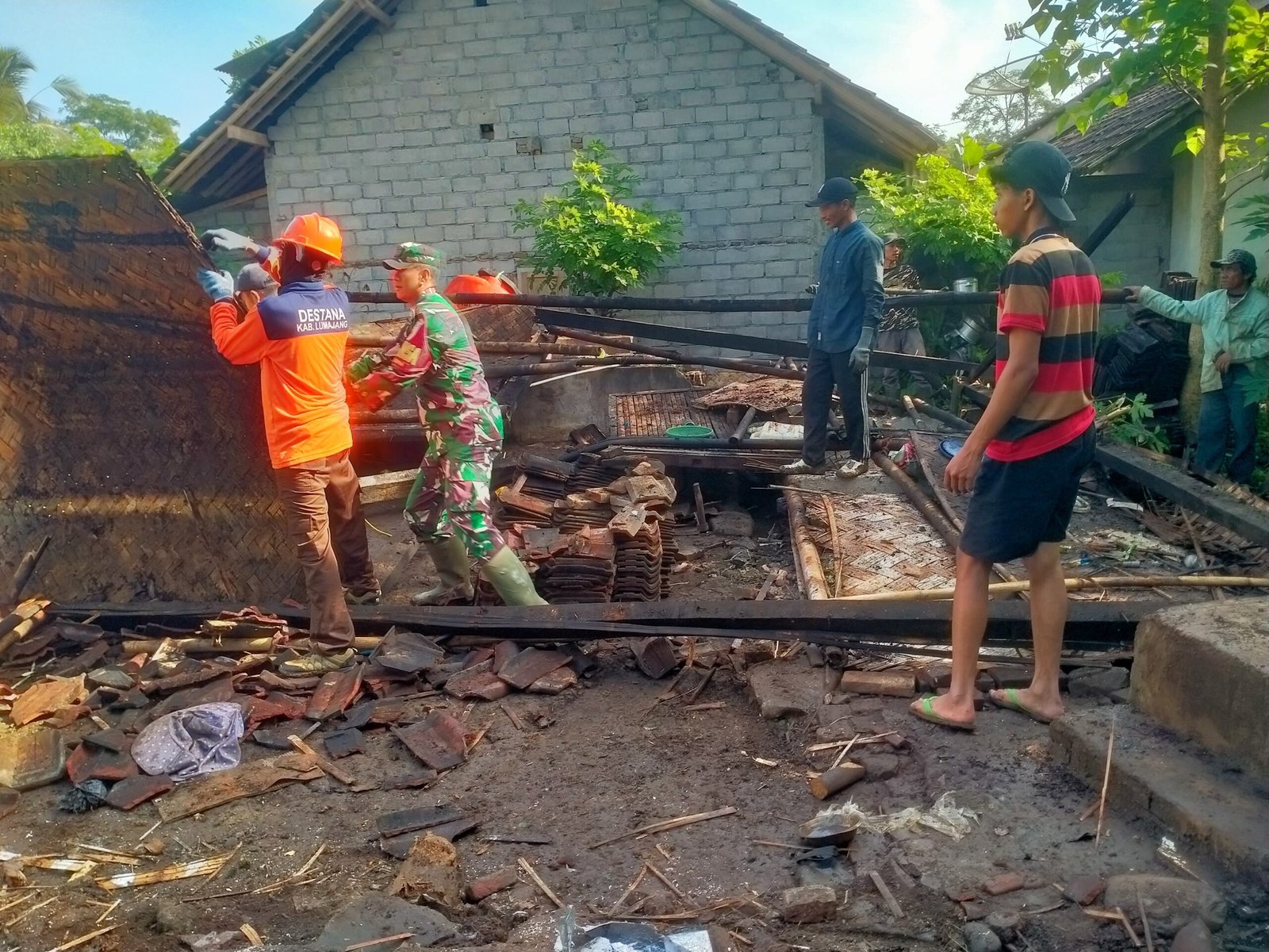 Lumajang, Wujud nyata kepedulian terhadap sesama terus ditunjukkan oleh TNI melalui peran aktif Babinsa di tengah masyarakat. Seperti yang dilakukan Babinsa Dadapan Koramil 0821-04/Gucialit, Koptu Adrian Jaya Kasih Guntu, yang bersama warga bergotong royong melaksanakan pembongkaran rumah milik Ibu Lastri, warga kurang mampu di Dusun Karang Rejo RT 014 RW 002 Desa Dadapan, Kecamatan Gucialit, Kabupaten Lumajang, Jawa Timur, pada Minggu (9/11/2025).