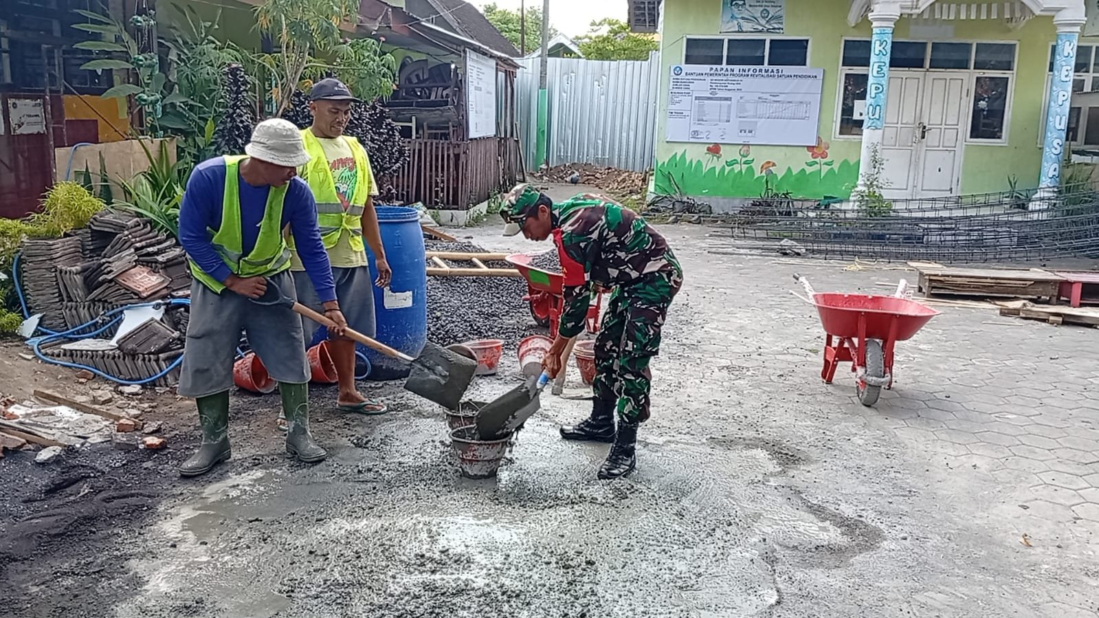 Wujud Kepedulian TNI, Babinsa Pakel Dampingi Renovasi Sekolah Dasar