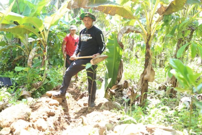 Malang, TMMD ke 126 – Personel Satgas TMMD ke-126 Kodim 0818/Malang-Batu bersama masyarakat Desa Lebakharjo, Kecamatan Ampelgading, menunjukkan semangat gotong royong tinggi dalam penggalian jalur pipanisasi yang menjadi salah satu sasaran fisik TMMD tahun ini.