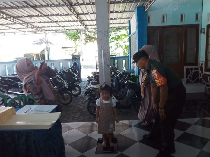 Upaya tersebut, merupakan salah satu Babinsa yang juga terlibat dalam kegiatan sinergisitas bersama bidan desa, dalam memonitor kesehatan warga Balita.