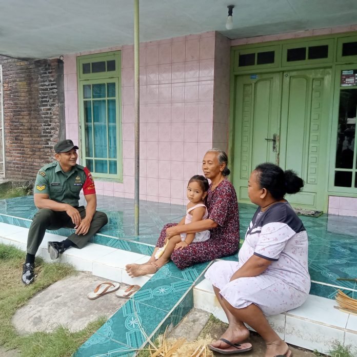 Lumajang, Dalam upaya memperkuat hubungan dan meningkatkan kerjasama dengan masyarakat, Babinsa Jatigono Koramil 0821/13 Kunir, Sertu Tiar Affandi, melaksanakan kegiatan komunikasi sosial (Komsos) dengan Ibu Ismawati salah satu warga Dusun Pandean, Desa Jatigono, Kecamatan Kunir, Kabupaten Lumajang, Jawa Timur, pada Senin (29/7/2024).