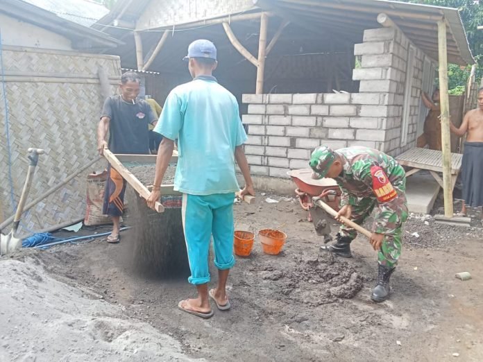 Wujudkan Kemanunggalan TNI-Rakyat, Babinsa Bantu Pembangunan Rumah Warga