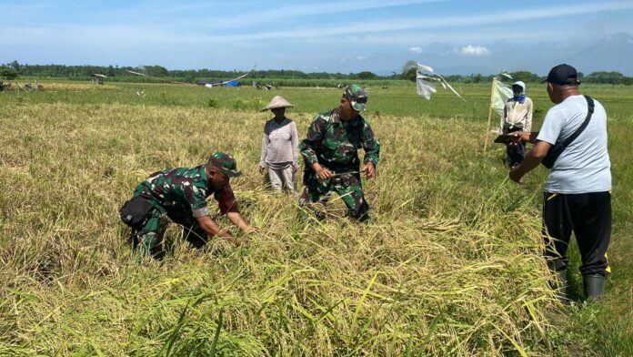 Lumajang, Bentuk nyata kepedulian TNI terhadap sektor pertanian kembali terlihat dalam kegiatan pendampingan panen padi yang dilakukan oleh Babinsa Jatirejo Koramil 0821-13/Kunir, Serka Benny Sofyana. Bersama Ketua Balai Penyuluh Pertanian (BPP) Kecamatan serta Petugas Penyuluh Lapangan (PPL) dan anggota Kelompok Tani Tulus Rejo, kegiatan panen berlangsung di lahan milik Imam Busaeri seluas 1,5 hektare di Dusun Jatiagung, Desa Jatirejo, Kecamatan Kunir, Kabupaten Lumajang, Jawa Timur, pada Selasa (14/10/2025)